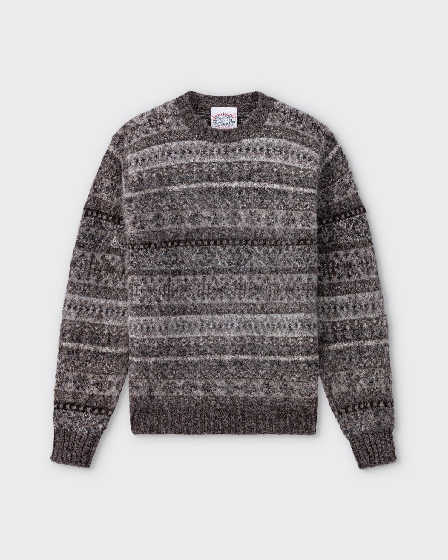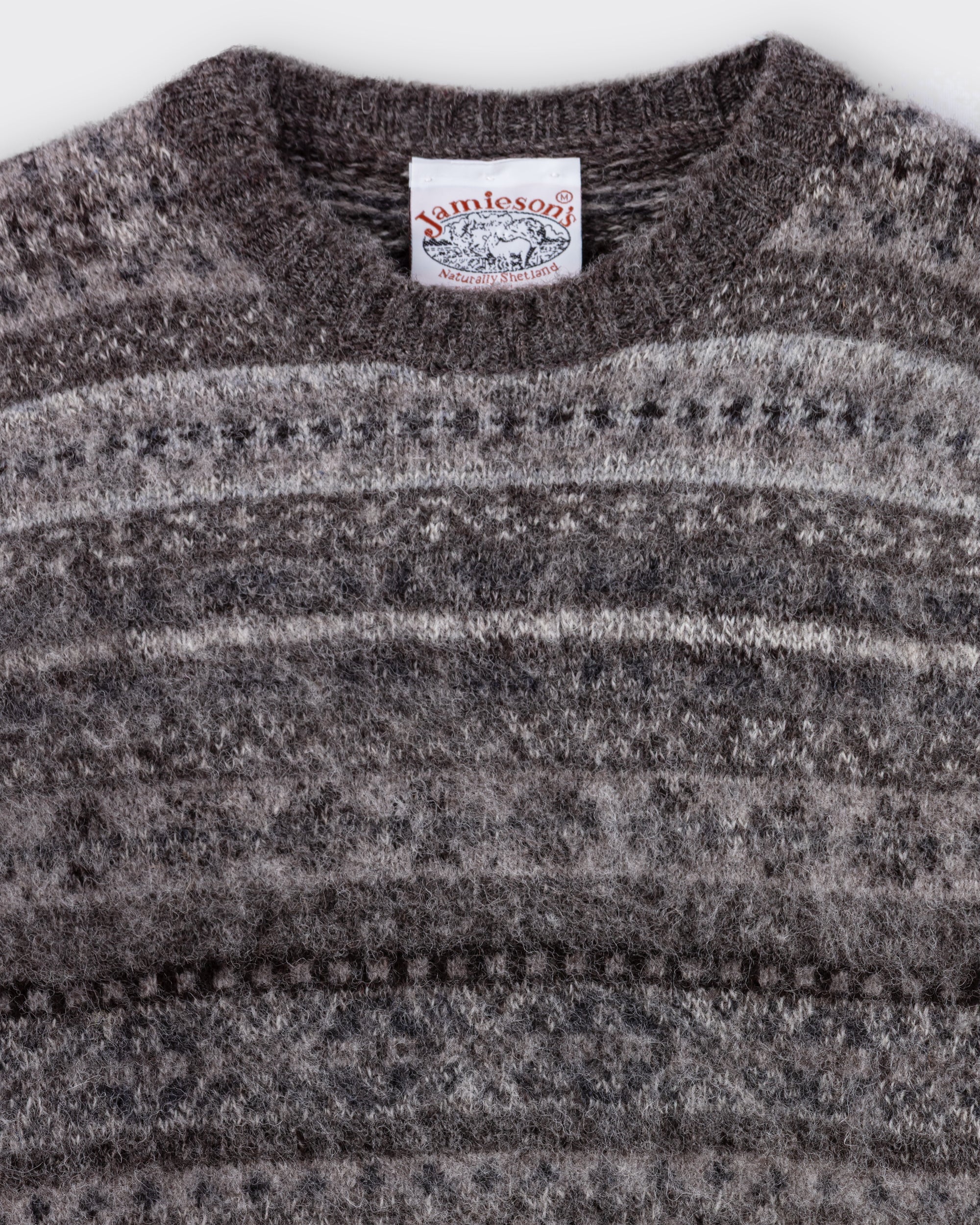 Les pulls Jamieson’s sont confectionnés dans une superbe laine des îles Shetland, région à mi-chemin entre Écosse et Norvège. Depuis 5 générations, la maison Jamieson’s file elle-même cette laine unique, perpétuant un savoir-faire de plus de 120 ans. Ce pull col rond en laine peignée, surnommé “Shaggy Dog” aux États-Unis, est à la fois doux et chaud — un grand classique Ivy League à porter sur une chemise ou un t-shirt.